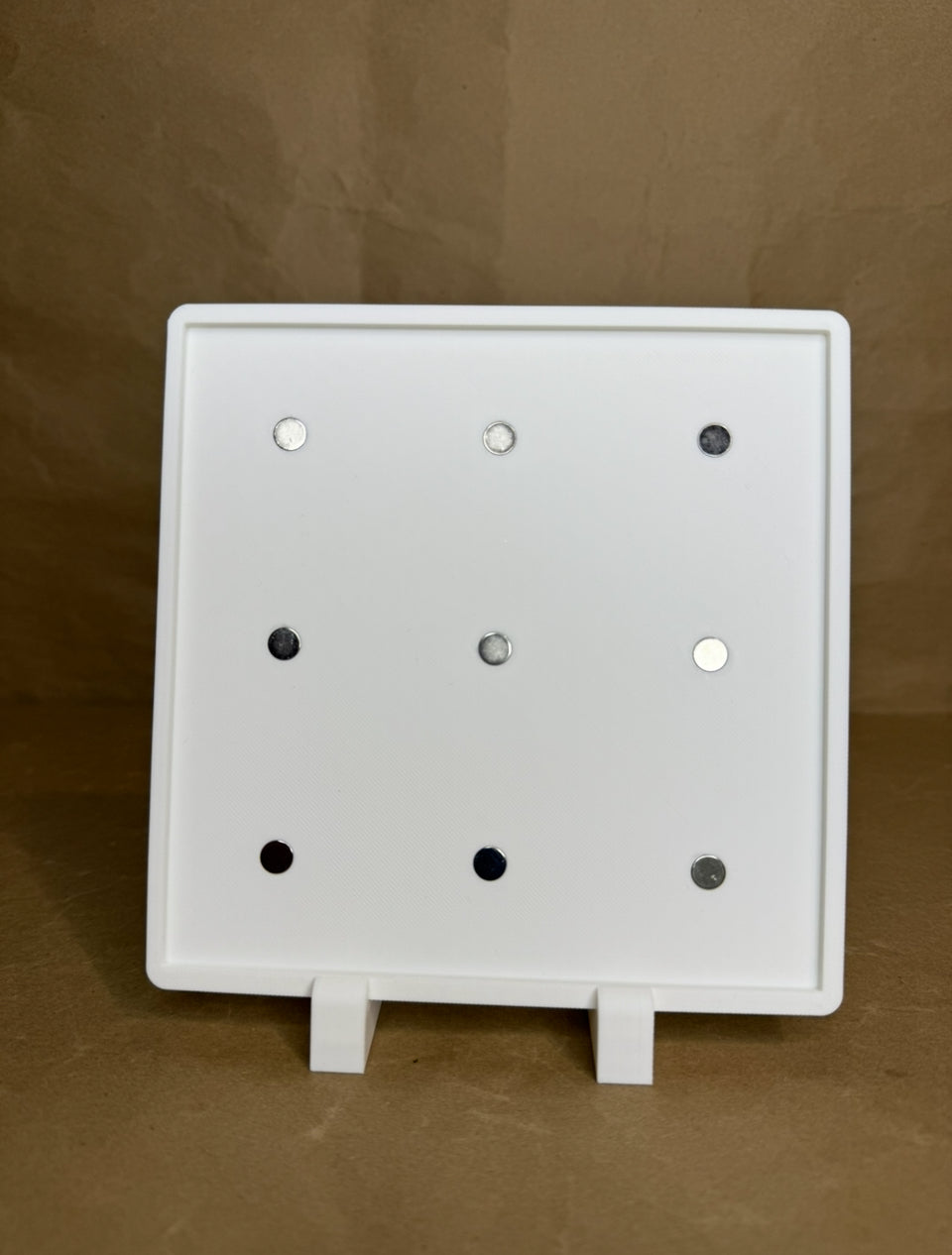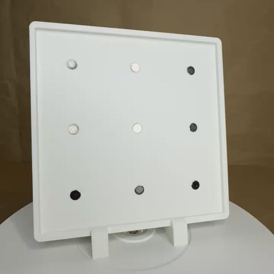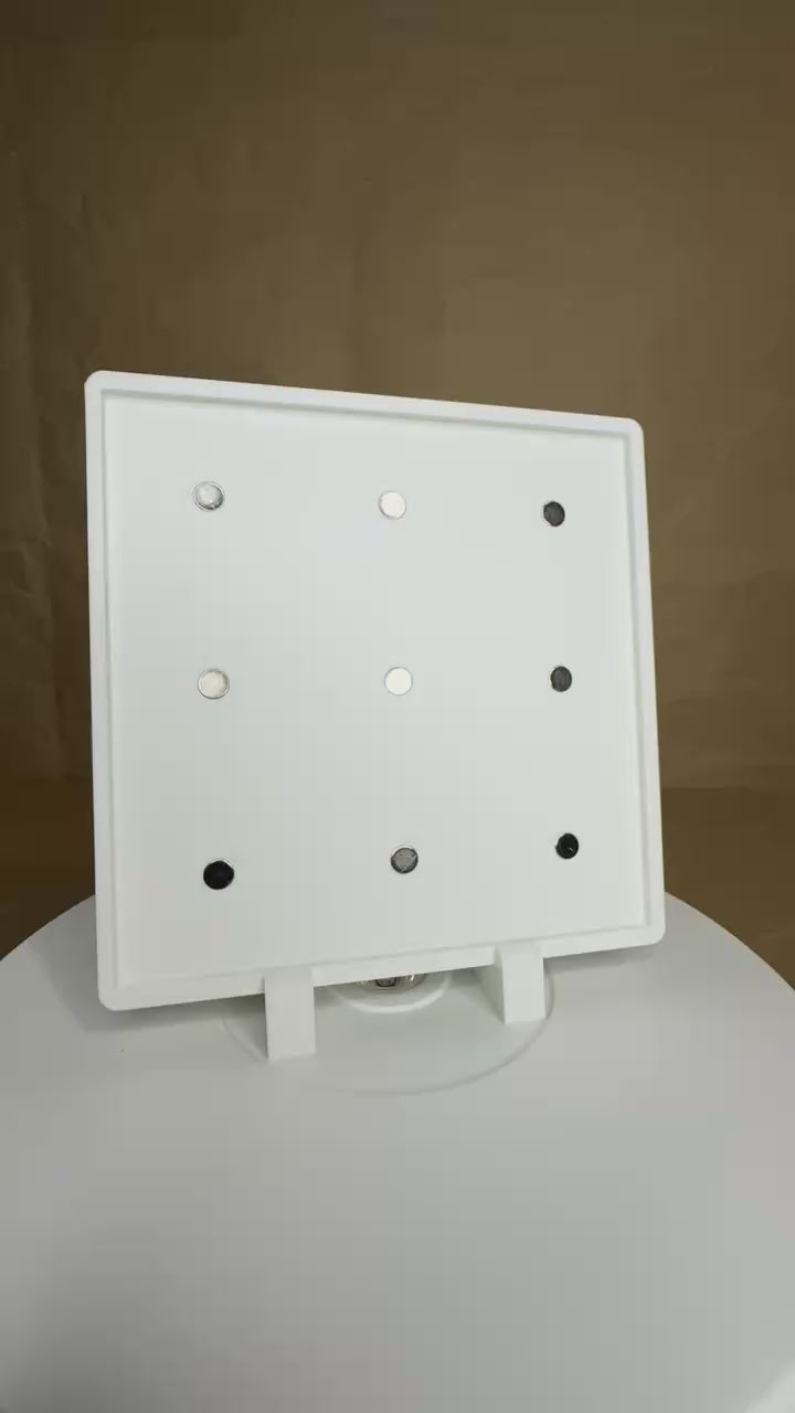 This frame is designed to perfectly fit your magnets to seamlessly display your mosaic or puzzle. This frame holds your photo magnets and comes with removeable straight feet and angled feet for versatile options.